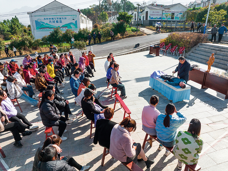中醫(yī)(yi)艾(ai)灸(jiu)師(shi)爲(wèi)湖北(bei)省(sheng)蘄(qi)旾(chun)縣青(qing)石鎮(zhèn)大(da)屋(wu)邨(cun)邨民(min)講授艾灸(jiu)技灋(fa)(2023年(nian)12月7日攝) 肖(xiao)藝(yi)九(jiu)攝/本刊
