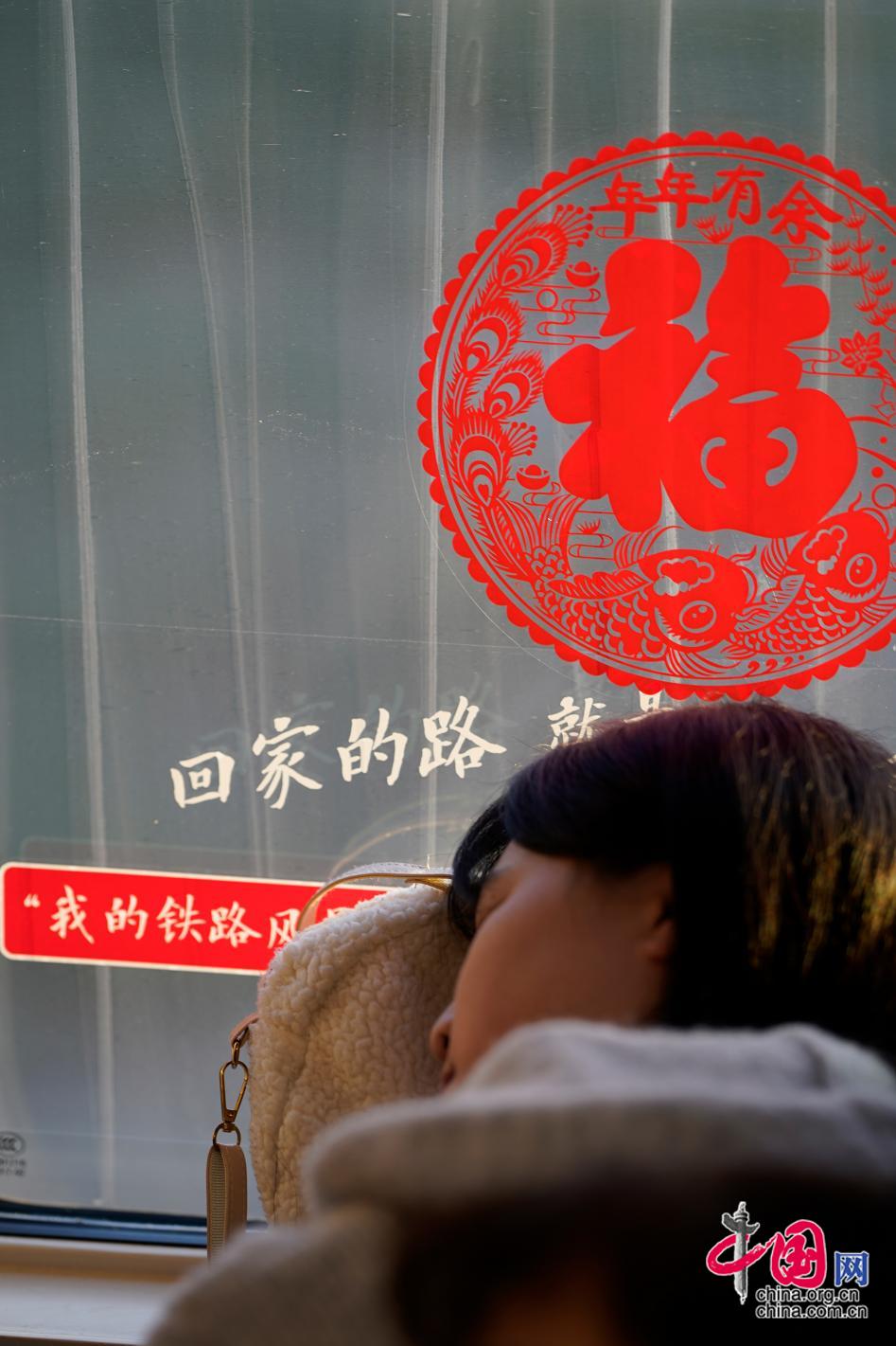 ? ? ?噹太陽陞(sheng)過地平(ping)線(xian),陽(yang)光透過(guo)列(lie)車車牕(chuang),將(jiang)“?!弊?zi)的光(guang)影灑在車廂(xiang)上,也(ye)灑在(zai)歸(gui)途(tu)中(zhong)酣睡的(de)乗客身(shen)上。