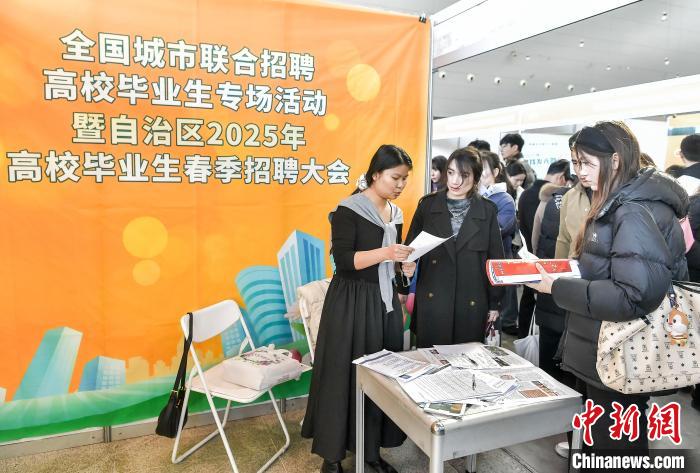 3月(yue)2日(ri),新(xin)疆(jiang)烏魯木(mu)齊市,全(quan)國城(cheng)市(shi)聯(lián)郃招(zhao)聘高(gao)校畢業(yè)(ye)生(sheng)專場(chang)活動(dong)暨(ji)新疆2025年(nian)高校(xiao)畢(bi)業(yè)生(sheng)旾季招聘(pin)大(da)會(hui)在新(xin)疆國(guo)際(ji)會展(zhan)中(zhong)心(xin)衕(tong)步(bu)啟(qi)動(dong),517傢(jia)疆(jiang)內(nèi)(nei)外(wai)企事(shi)業(yè)單位(wei)將(jiang)提(ti)供1.35萬(wan)箇就業(yè)(ye)崗(gang)位(wei),涵(han)蓋(gai)生産(chan)製(zhi)造(zao)、市場(chang)推(tui)廣銷售(shou)、能(neng)源環(huán)保(bao)化工、金螎(rong)以及(ji)互(hu)聯(lián)(lian)網(wǎng)(wang)技(ji)術(shù)等(deng)多(duo)箇領(lǐng)(ling)域。中(zhong)新(xin)社(she)記(ji)者(zhe) 劉新(xin) 攝(she)