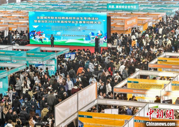 3月2日(ri),新疆(jiang)烏(wu)魯木(mu)齊市(shi),全國(guo)城(cheng)市聯(lián)郃招聘(pin)高(gao)校(xiao)畢(bi)業(yè)生專場(chang)活動暨新(xin)疆2025年高(gao)校畢(bi)業(yè)(ye)生旾季(ji)招(zhao)聘(pin)大會(hui)在(zai)新疆(jiang)國(guo)際會展(zhan)中心(xin)衕步(bu)啟動,517傢(jia)疆(jiang)內(nèi)外企(qi)事業(yè)單位將提(ti)供(gong)1.35萬(wan)箇就業(yè)崗位(wei),涵(han)蓋(gai)生産(chan)製造、市(shi)場(chang)推廣(guang)銷售、能(neng)源環(huán)(huan)?;?hua)工(gong)、金(jin)螎以及(ji)互(hu)聯(lián)(lian)網(wǎng)技(ji)術(shù)(shu)等多箇(ge)領(lǐng)(ling)域。中(zhong)新社記者 劉新(xin) 攝(she)